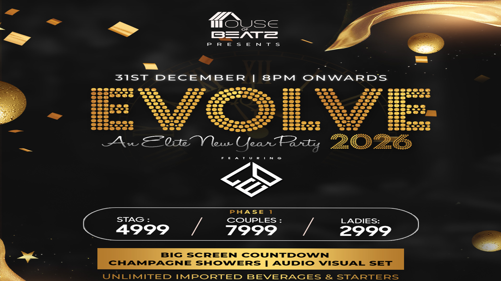 EVOLVE 2026AN ELITE NEW YEAR PARTYDate: 31st Dec / Wed / 8pm onwardsVenue: BLEND - TAJ CLUB HOUSEUnlimited Imported Beverages & StartersFor More Details: 8866222751